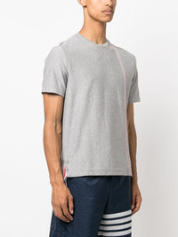 RWB stripe cotton T-shirt Made from cotton, this grey T-shirt is infused with Thom Browne's signature aesthetic. Featuring a buttoned step hem, the silhouette is crossed by the recognisable RWB grosgrain trim -- a celebration of the label's American roots. Highlights - Light grey/red/navy blue - Cotton - Jersey knit - Grosgrain ribbon trim - Rwb stripe - Signature grosgrain side tabs - Crew neck - Short sleeves - Step hem Made In Italy Composition Outer: Cotton 100% SIZE & FIT Model measurements Height 6 ft 2 in(1.87 m) Bust/Chest 38.18 in(97 cm) Hips 36.61 in(93 cm) Waist 29.13 in(74 cm) Measurement CHEST 41.73 in(106 cm) FittingInformation Designed for a relaxed fit, this piece allows for comfort and movement when worn Made from a midweight non-stretch fabric, this piece offers minimal elasticity when worn This piece fits true to size – take your usual size Washing instructions Dry Clean Only