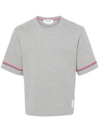 RWB-stripe cotton T-shirt Highlights - Light grey - Cotton - Jersey texture - Rwb stripe - Ribbed crew neck - Short sleeves - Short side slits - Logo tag - Signature grosgrain side tabs - Signature grosgrain loop tab - High-low hem Imported Composition Cotton 100% SIZE & FIT Model measurements Height 6 ft 2 in(1.88 m) Bust/Chest 35.03 in(89 cm) Hips 35.82 in(91 cm) Waist 27.95 in(71 cm) FittingInformation Designed for a relaxed fit, this piece allows for comfort and movement when worn Made from a midweight non-stretch fabric, this piece offers minimal elasticity when worn This piece fits true to size – take your usual size