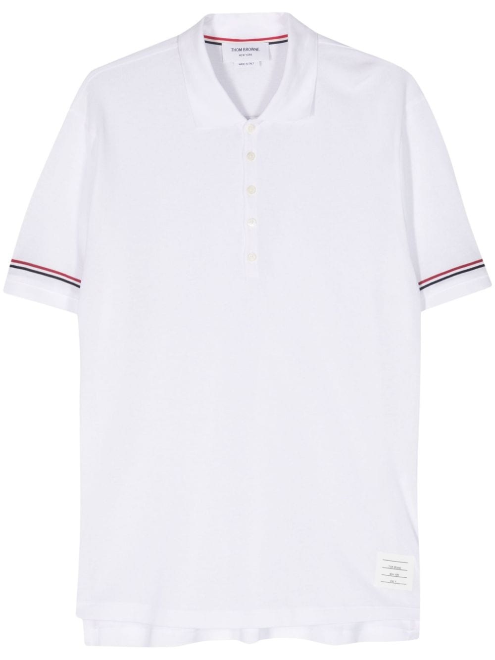 RWB-stripe fine-knit polo shirt Highlights - White - Cotton - Fine knit - Logo patch to the front - Polo collar - Front button placket - Short sleeves - Rwb stripe - Ribbed cuffs - Signature grosgrain side tabs - Side button fastening - Straight hem Made in Italy Composition Outer: Cotton 100% SIZE & FIT Measurement CHEST 38.58 in(98 cm) FittingInformation Designed for a regular fit, this polo shirt offers a comfortable loose fit throughout the body Made from a midweight non-stretch fabric, this piece offers minimal elasticity when worn This piece fits true to size – take your usual size Washing instructions Machine Wash