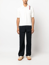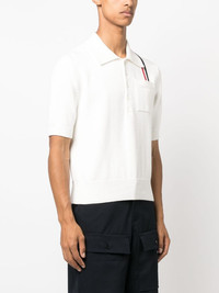 RWB-stripe knitted polo shirt A signature of the brand, the RWB stripes celebrate Thom Browne's American roots by mirroring the USA's national colours. Here, the trademark punctuates this knitted polo shirt, crossing the silhouette for an instantly recognisable look. Highlights - White/red/navy blue - Cotton - Knitted construction - Fine knit - Grosgrain ribbon trim - Rwb stripe - Spread collar - Short front button fastening - Chest patch pocket - Short sleeves - Ribbed cuffs and hem - Straight hem Made in Italy Composition Outer: Cotton 100% SIZE & FIT Model measurements Height 6 ft 2 in(1.87 m) Bust/Chest 38.18 in(97 cm) Hips 36.61 in(93 cm) Waist 29.13 in(74 cm) Measurement CHEST 41.73 in(106 cm) SLEEVE LENGTH 19.68 in(50 cm) FittingInformation Designed for a regular fit, this polo shirt offers a comfortable loose fit throughout the body Made with a midweight knit, this piece offers some stretch This piece fits true to size – take your usual size Washing instructions Dry Clean Only