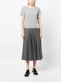 RWB-stripe logo-patch T-shirt Completely revamping and adding its touch to a classic T-shirt, Thom Browne accents this design with the ionic RWB stripe tab to the rear and concealed under a side button fastening. To complete the transformation, the cotton-made design is further adorned with a contrasting trim and a logo patch to the side. Highlights - Light grey - Cotton - Contrasting trim - Rwb stripe - Logo patch to the side - Crew neck - Side button fastening - Short sleeves - Asymmetric hem Imported Composition Cotton 100% SIZE & FIT Model measurements Height 5 ft 9 in(1.76 m) Bust/Chest 31.1 in(79 cm) Hips 35.03 in(89 cm) Waist 24.4 in(62 cm) FittingInformation Designed to be unstructured, offering a loose fit throughout Made from a midweight non-stretch fabric, this piece offers minimal elasticity when worn This piece fits true to size – take your usual size Washing instructions Hand Wash