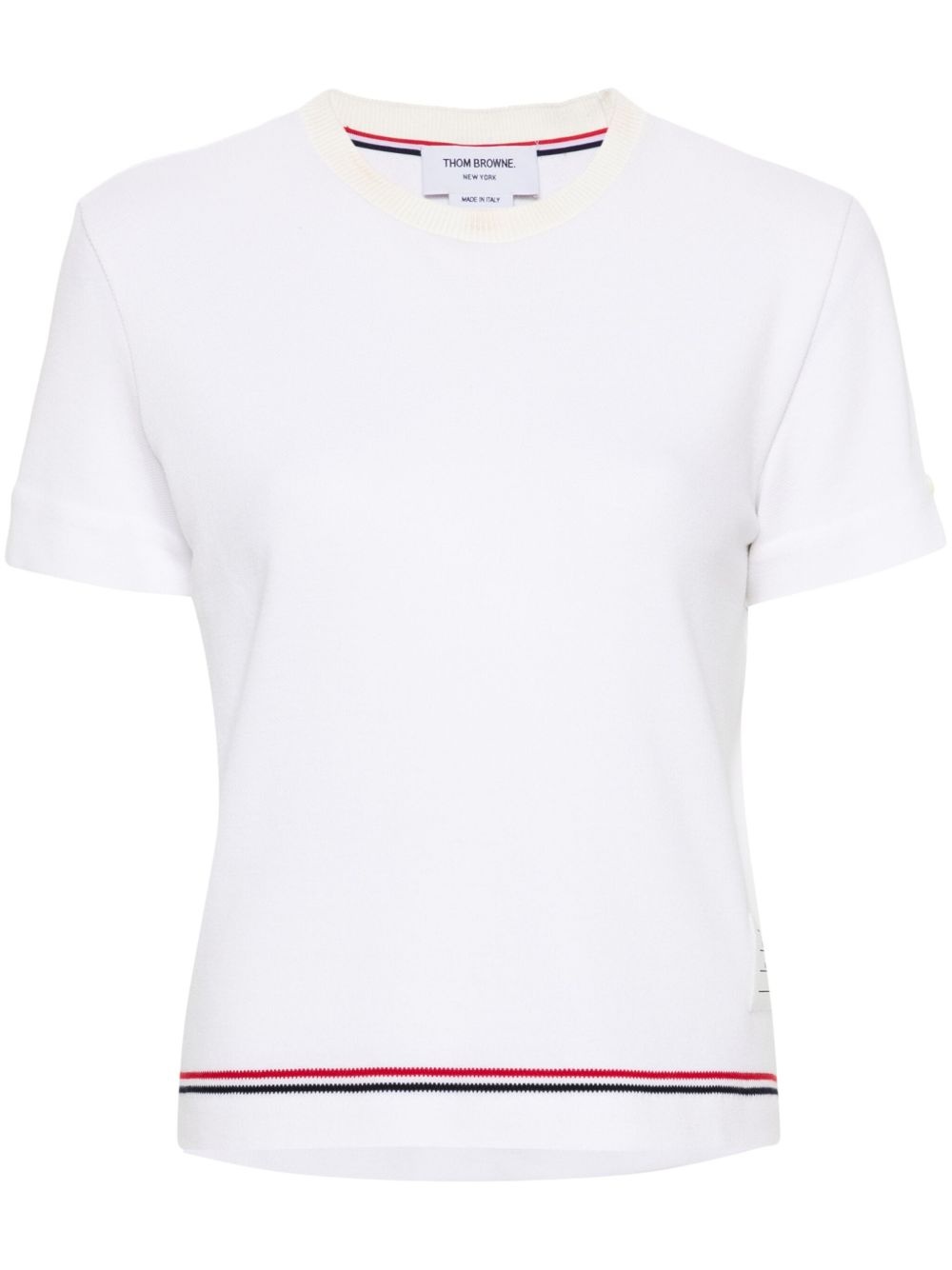 RWB-stripe pique-knit top Highlights - White - Cotton - Pique knit construction - Ribbed crew neck - Short sleeves - Split cuffs - Logo patch to the side - Short side slits - Rwb stripe to the hem - Rear signature grosgrain loop tab - Straight hem Made in Italy Composition Cotton 100% SIZE & FIT Model measurements Height 5 ft 9 in(1.74 m) Bust/Chest 34.64 in(88 cm) Hips 36.61 in(93 cm) Waist 26.37 in(67 cm) FittingInformation Designed for a slim fit that sits just away from the body offering a close yet comfortable fit Made from a midweight fabric This piece fits true to size – take your usual size