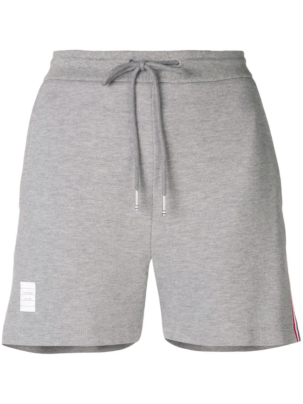 Rwb Stripe Pique Shorts Launched in 2003, Thom Browne is internationally celebrated for its clean-cut silhouettes and couture-like sensibilities. Crafted from light grey cotton, these high-rise shorts feature an elasticated drawstring waist, a signature tri-colour striped trim and side pockets. Made in Italy Composition Cotton 100% Washing instructions Dry Clean Only