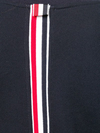 RWB stripe relaxed pique T-shirt Occasionally inspired by the sportive lifestyle, Browne incorporates it in his impeccable craftsmanship. Crafted from navy blue cotton, this relaxed T-shirt was designed with classic pique. With an asymmetric straight hem, it features a ribbed crew neck, short sleeves, a side button fastening, a signature tri-colour striped trim, a grosgrain band and a printed logo to the front. Made in Italy Composition Cotton 100% SIZE & FIT Measurement SLEEVE LENGTH 1.96 in(5 cm) Shoulder Width 15.35 in(39 cm) LENGTH 23.62 in(60 cm) WAIST 35.82 in(91 cm) BUST 35.82 in(91 cm) Washing instructions Dry Clean Only