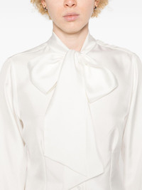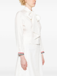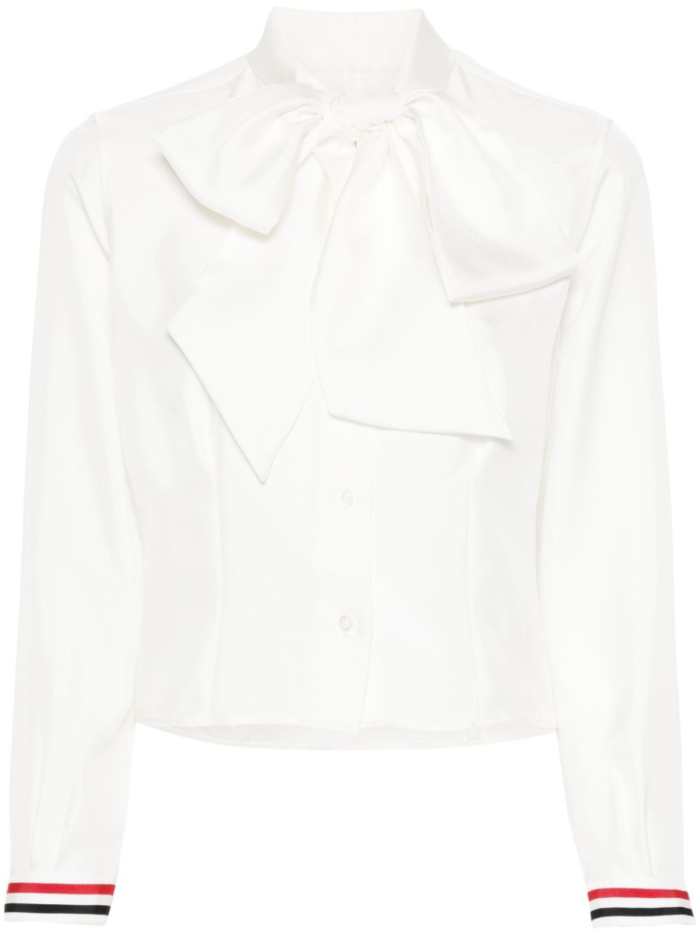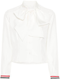 RWB-stripe silk shirt Highlights - White - Silk - Satin finish - Pussy-bow collar - Long sleeves with buttoned cuffs - Rwb stripe to the cuffs - Dart detailing - Rear signature grosgrain loop tab - Rear keeper loop - Straight hem - Front button fastening Made in Italy Composition Silk 100% SIZE & FIT Model measurements Height 5 ft 10 in(1.77 m) Bust/Chest 34.25 in(87 cm) Hips 37.4 in(95 cm) Waist 29.13 in(74 cm) FittingInformation Designed for a slim fit that sits just away from the body offering a close yet comfortable fit The dart stitching adds structure and a closer fit in the torso of this piece Made from a midweight non-stretch fabric This piece fits true to size – take your usual size