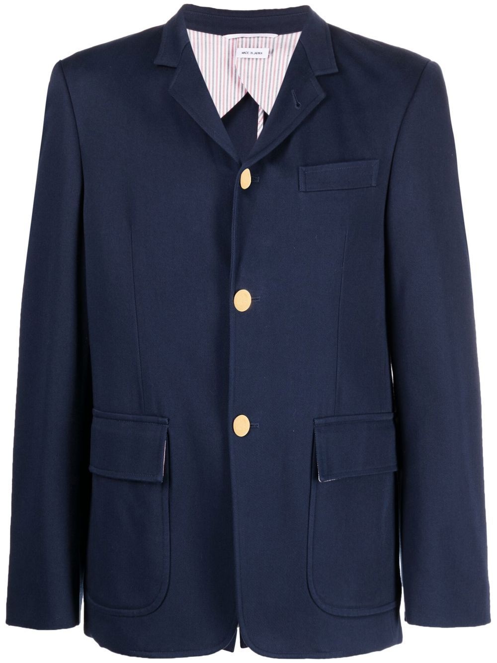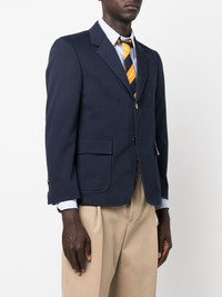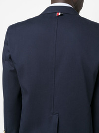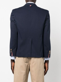 RWB-stripe tailored blazer RWB-stripe tailored blazer from THOM BROWNE featuring navy blue, cotton, RWB stripe, piped-trim detailing, front button fastening, long sleeves, front flap pockets and curved hem. Imported Composition Outer: Cotton 100% Lining: Cotton 100%, Cupro 100% SIZE & FIT Model measurements Height 6 ft 2 in(1.87 m) Bust/Chest 36.41 in(92.5 cm) Hips 37 in(94 cm) Waist 29.52 in(75 cm) FittingInformation Designed for a regular fit, allowing for a comfortably loose fit throughout the body The vented hem offers movement at the rear Made from a midweight non-stretch fabric This piece fits true to size – take your usual size Measurement CHEST 39.37 in(100 cm) SLEEVE LENGTH 33.07 in(84 cm) Washing instructions Dry Clean Only