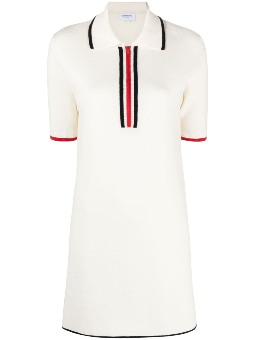 RWB-stripe virgin wool dress Highlights - Ecru - Virgin wool - Knitted construction - Rwb stripe - Contrasting trim - Polo collar - Short front zip fastening - Short sleeves - Short side slits - High-low hem - Thigh-length Made in Italy Composition Virgin Wool 100% SIZE & FIT Model measurements Height 5 ft 9 in(1.76 m) Bust/Chest 31.88 in(81 cm) Hips 35.43 in(90 cm) Waist 24.8 in(63 cm) FittingInformation Designed for a relaxed fit, this piece allows for comfort and movement when worn Made with a midweight knit, this piece offers some stretch This piece fits true to size – take your usual size