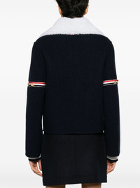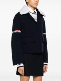 RWB-striped shearling-collar jacket Highlights - Navy blue - Wool-cashmere blend - Rwb stripe - Adjustable rwb armband - Detachable shearling collar - Notched lapels - Concealed front button fastening - Long sleeves - Wide cuffs - Straight hem - Cropped Made in Italy Composition Outer: Sheep Skin/Shearling 100%, Wool 90%, Cashmere 10% SIZE & FIT Model measurements Height 5 ft 9 in(1.76 m) Bust/Chest 31.88 in(81 cm) Hips 35.43 in(90 cm) Waist 24.8 in(63 cm) FittingInformation Designed for a relaxed fit, this piece allows for comfort and movement when worn Made from a midweight non-stretch fabric This piece fits true to size – take your usual size