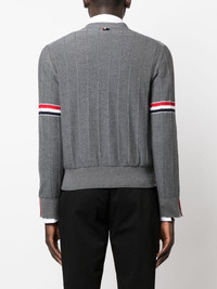 RWB striped V-neck cardigan The New York-based brand Thom Browne is one for presenting traditional silhouettes with contemporary finishes. This knitted cardigan displays the ethos, thanks to the classic virgin wool design that is contrasted by signature RWB striped trims. Highlights - Medium grey - Virgin wool - V-neck - Two front patch pockets - Front button fastening - Rwb stripe - Long sleeves - Ribbed edge Made in Italy Composition Virgin Wool 100% SIZE & FIT Model measurements Height 6 ft 2 in(1.87 m) Bust/Chest 36.41 in(92.5 cm) Hips 37 in(94 cm) Waist 29.52 in(75 cm) FittingInformation Designed for a relaxed fit, this piece allows for comfort and movement when worn Made with a midweight knit, this piece offers some stretch This piece fits true to size – take your usual size