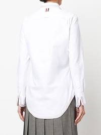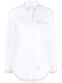 RWB trim Oxford shirt Made in Italy from crisp white cotton, this Oxford shirt from Thom Browne's SS23 collection is elevated with a classic point collar and RWB trimming throughout for a contemporary take on a timeless silhouette. Made in Italy Composition Cotton 100% SIZE & FIT Model measurements Height 5 ft 10 in(1.78 m) Bust/Chest 33.07 in(84 cm) Hips 35.82 in(91 cm) Waist 25.98 in(66 cm) FittingInformation This piece fits true to size. We recommend you get your regular size Cut for a loose fit Made with a mid-weight non-stretch fabric