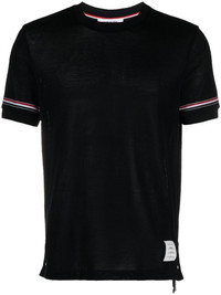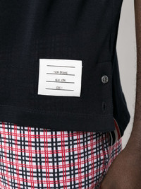 RWV-stripe knitted top Decorated with the brand's signature RWB stripe, this knitted top is part of THOM BROWNE's SS24 collection. It's crafted from soft cotton and finished with a logo patch on the front. Highlights - Navy blue - Cotton - Knitted construction - Rwb stripe - Logo patch to the front - Crew neck - Short sleeves - Side button fastening - Straight hem Made in Italy Composition Outer: Cotton 100% Cotton 97%, Elastane 3% SIZE & FIT Model measurements Height 6 ft 2 in(1.87 m) Bust/Chest 36.41 in(92.5 cm) Hips 37 in(94 cm) Waist 29.52 in(75 cm) FittingInformation Designed for a relaxed fit, this piece allows for comfort and movement when worn Made with a fine knit, this piece offers some stretch This piece fits true to size – take your usual size