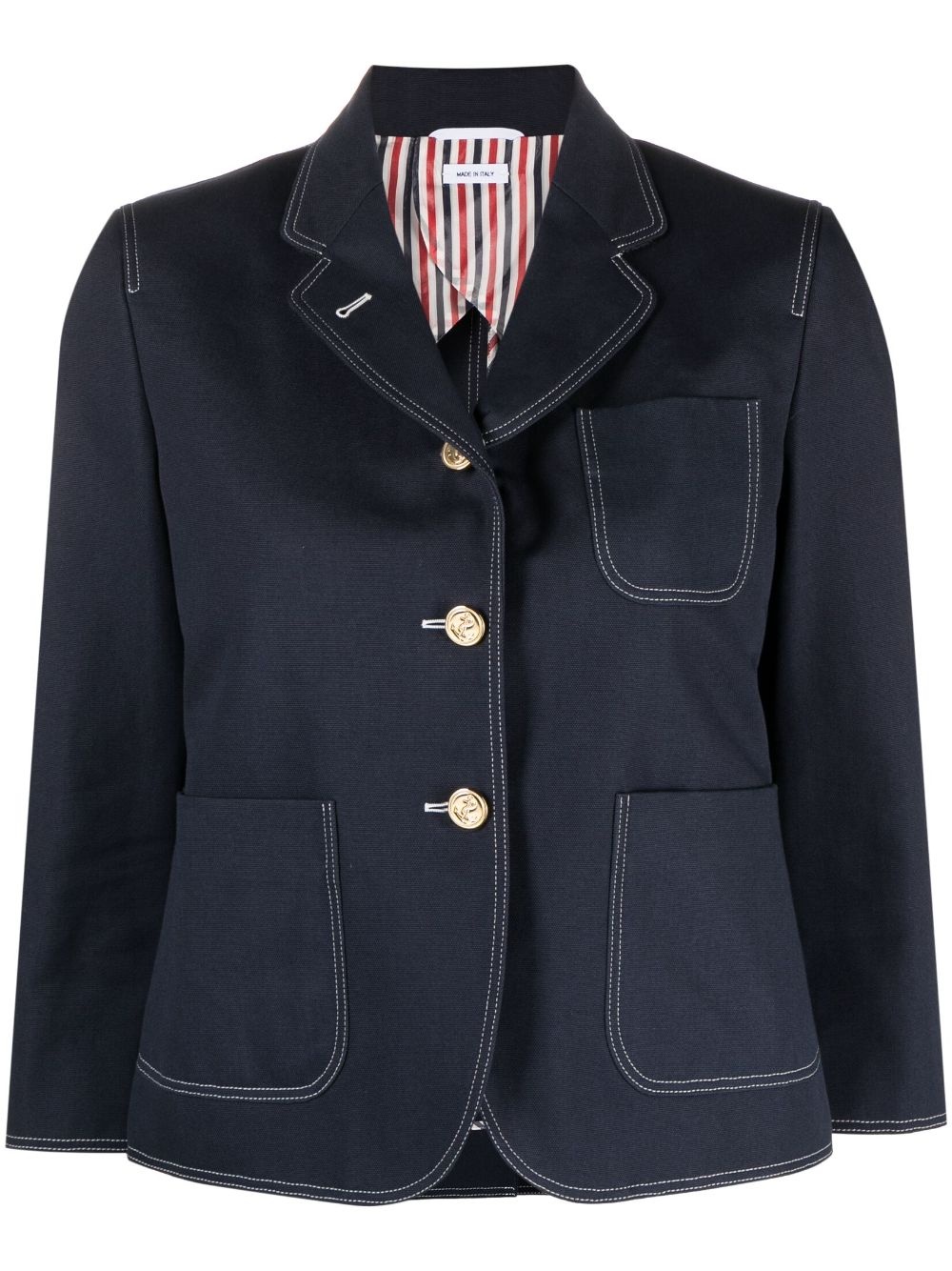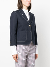 sack-patch cropped jacket Highlights - Navy blue - Cotton - Mini logo tag - Notched lapels - Front button fastening - Chest flap pocket - Two front flap pockets - Long sleeves - Buttoned cuffs - Cropped Made in Italy Composition Outer: Cotton 100% Lining: Cupro 100% SIZE & FIT Model measurements Height 5 ft 10 in(1.77 m) Bust/Chest 35.03 in(89 cm) Hips 35.03 in(89 cm) Waist 23.62 in(60 cm) FittingInformation Designed for a slim fit that sits just away from the body offering a close yet comfortable fit The vented hem offers movement at the rear Made from a midweight non-stretch fabric This piece fits true to size – take your usual size