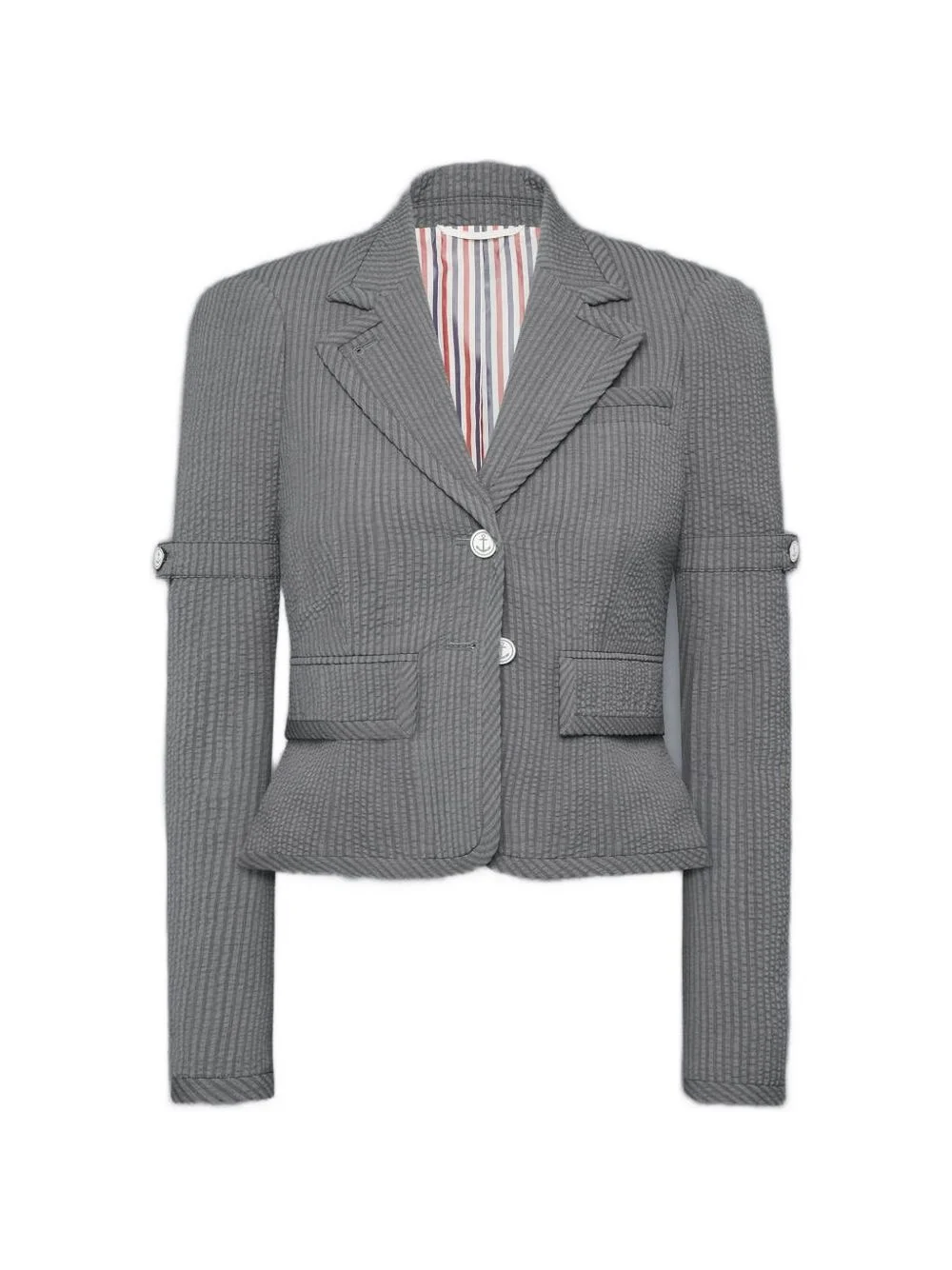 seersucker cropped blazer Highlights - Light grey - Seersucker - Notched lapels - Button fastening - Cropped - Flap pockets Made in Italy Composition Outer: Wool 100% Lining: Cupro 100% Washing instructions Read Manufacturer Guidelines