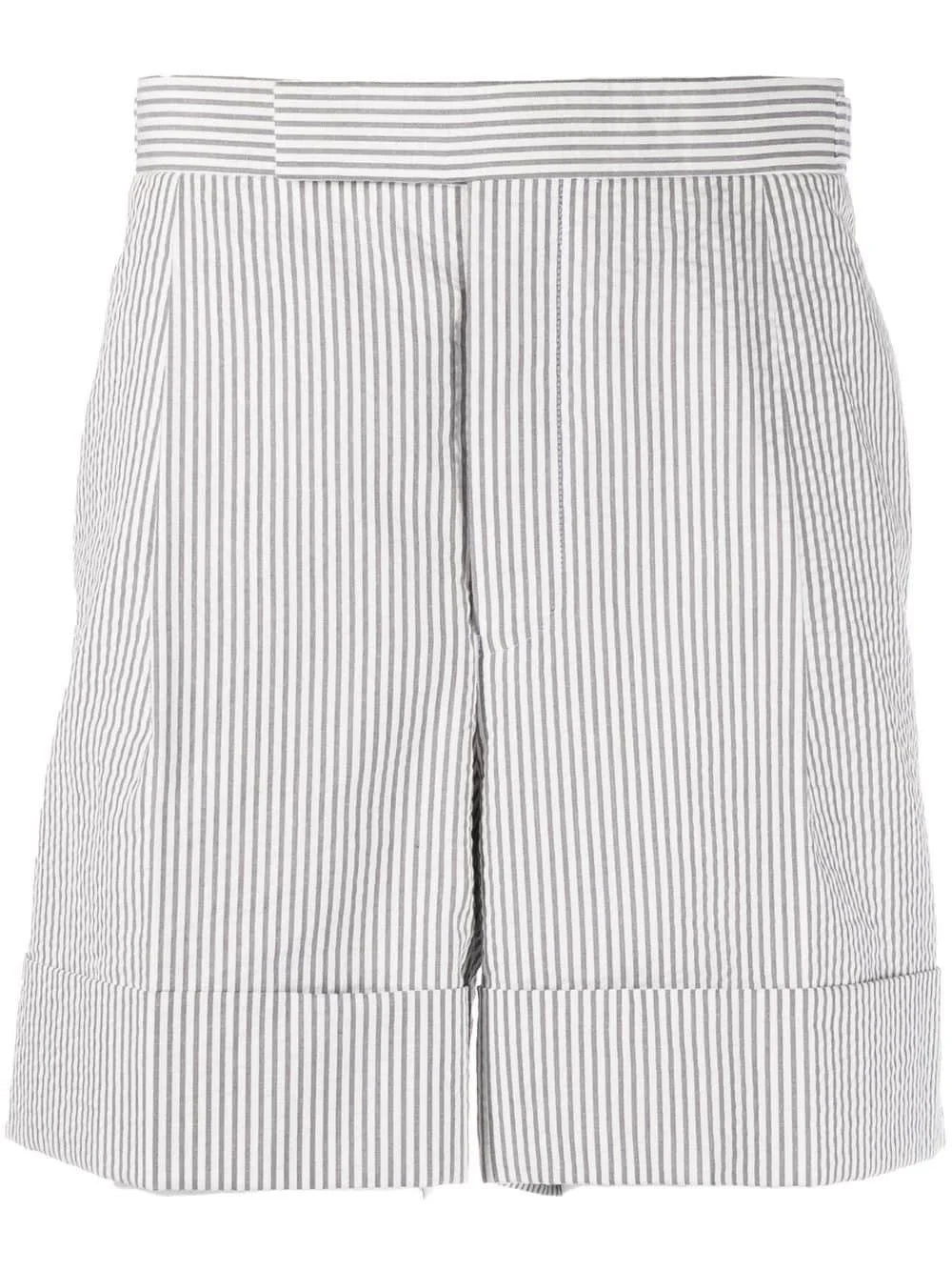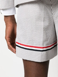 seersucker striped tailored shorts Crafted in Japan and worked for a seersucker texture, these shorts are cut for a tailored silhouette elevated with a vertical stripe pattern. Thom Browne's signature RWB stripe adds an instantly recognisable feature to the design. Imported Composition Outer: Cotton 100% Lining: Cupro 100%