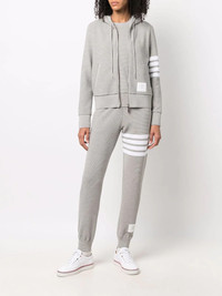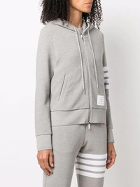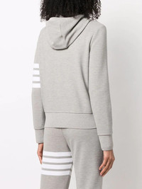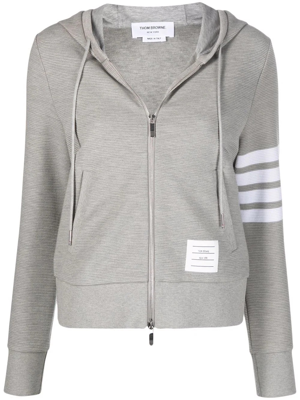 signature 4-Bar stripe hoodie light grey cotton signature 4-Bar stripe long sleeves front zip fastening two side slash pockets drawstring hood Made in Italy Composition Outer: Cotton 100% SIZE & FIT Model measurements Height 5 ft 10 in(1.78 m) Bust/Chest 33.07 in(84 cm) Hips 36.61 in(93 cm) Waist 24.8 in(63 cm) FittingInformation This piece fits true to size. We recommend you get your regular size Cut for a loose fit Made with a mid-weight fabric