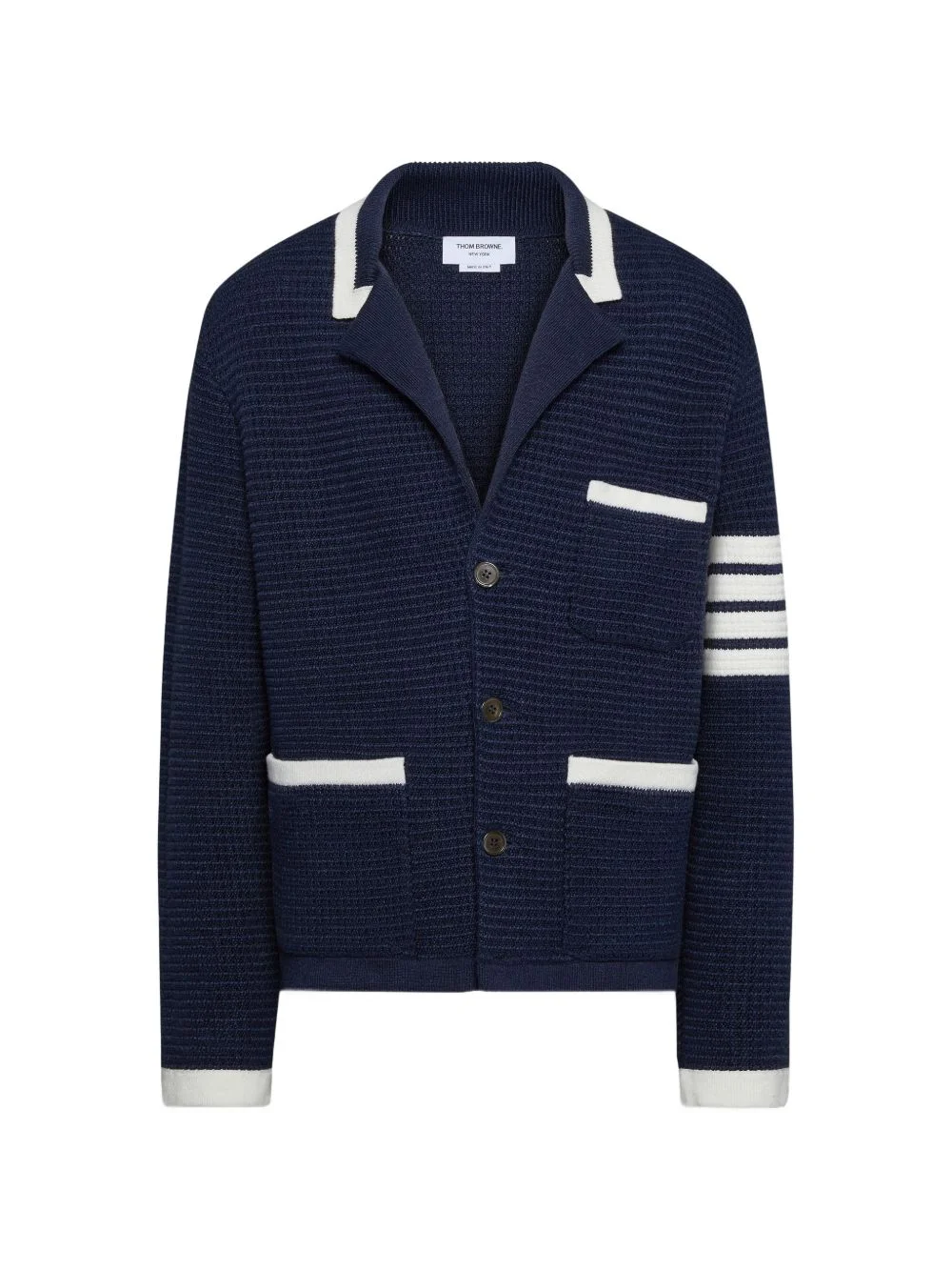 signature striped cardigan jacket Highlights - Blue - Patch pockets - Button fastening - 4-bar stripe detail Made in Italy Composition Linen/Flax 65%, Cotton 30%, Polyamide 4%, Elastane 1% Washing instructions Read Manufacturer Guidelines