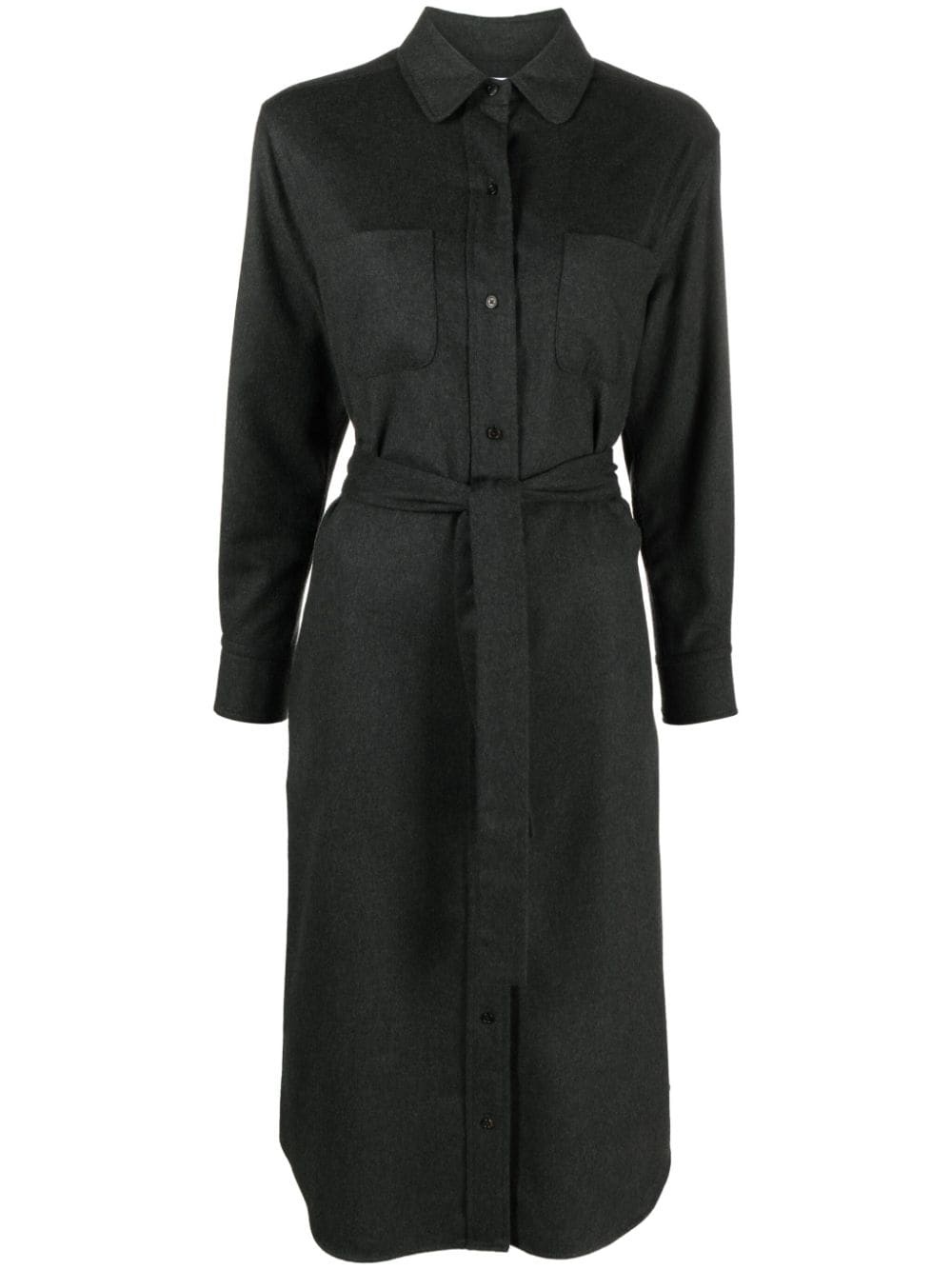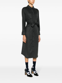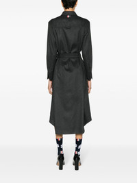 silk-blend midi shirt dress Highlights - Charcoal grey - Cashmere-silk blend - Grosgrain ribbon trim - Rwb stripe - Locker loop - Rounded collar - Front button fastening - Long sleeves - Buttoned cuffs - Tied waist - Belt loops - Two side slit pockets - Curved hem - Calf-length Made in Italy Composition Silk 51%, Cashmere 49% SIZE & FIT Model measurements Height 5 ft 9 in(1.76 m) Bust/Chest 31.88 in(81 cm) Hips 35.43 in(90 cm) Waist 24.8 in(63 cm) FittingInformation Designed for a relaxed fit, this piece allows for comfort and movement when worn The adjustable tie waist gives a more adaptable and personalised fit Made from a midweight non-stretch fabric This piece fits true to size – take your usual size