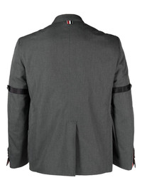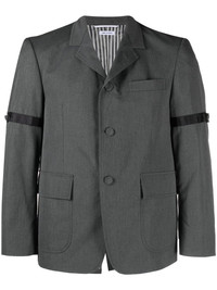 single-breasted button-fastening blazer Instantly recognisable as Thom Browne by the signature grosgrain loop, this single-breasted blazer is constructed from sophisticated materials and has a sleek silhouette that reflects the brand's tailored approach to garment construction. Highlights - Grey - Cotton - Notched lapels - Long sleeves - Front button fastening Imported Composition Outer: Cotton 100% Lining: Cupro 100%