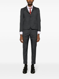 single-breasted wool blend blazer Highlights - Dark grey - Wool blend - Tailored design - Rwb stripe - Notched lapels - Front button fastening - Shoulder pads - Long sleeves - Buttoned cuffs - Chest welt pocket - Two front flap pockets - Three internal jetted pockets - English rear vents - Rwb stripe lining Imported Composition Wool 50%, Polyester 50% SIZE & FIT Model measurements Height 6 ft 2 in(1.88 m) Bust/Chest 36.61 in(93 cm) Hips 35.82 in(91 cm) Waist 27.95 in(71 cm) FittingInformation Designed for a slim fit, offering a comfortable fit that sits just away from the body The internal shoulder pads offer a structured shape Made from a midweight non-stretch fabric This piece fits true to size – take your usual size