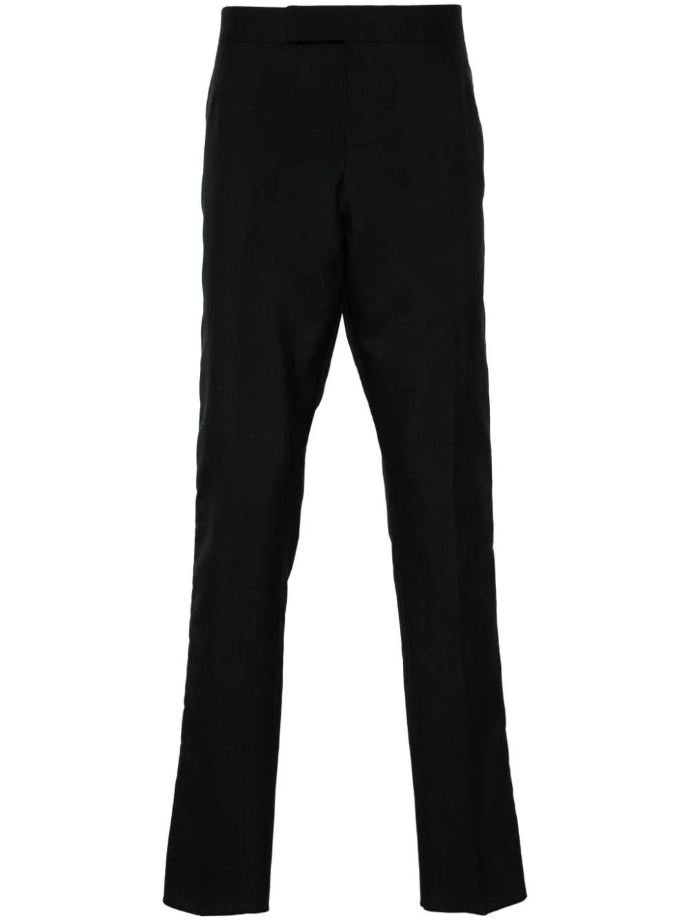 skinny trousers Highlights - Black - Wool blend - Tailored design - Mid-rise - Side stripe detailing - Two side inset pockets - Pressed crease - Signature grosgrain loop tab - Adjustable strap to the rear - Rear button-fastening jetted pocket - Skinny cut - Front concealed button fly and hook fastening Made in Italy Composition Outer: Wool 50%, Polyester 50% Lining: Cupro 100%, Polyester 65%, Cotton 35% SIZE & FIT Model measurements Height 6 ft 1 in(1.85 m) Bust/Chest 35.82 in(91 cm) Hips 37.79 in(96 cm) Waist 29.13 in(74 cm) Measurement FRONT RISE 11.02 in(28 cm) INSIDE LEG 34.25 in(87 cm) Hem Width 13.38 in(34 cm) WAIST 34.64 in(88 cm) FittingInformation Designed for a slim fit, offering a comfortable fit that sits just away from the leg The adjustable tabs allow for fitted preferences Made from a midweight non-stretch fabric This piece fits true to size – take your usual size