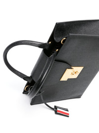 small Mr. Thom leather tote bag Highlights - Black - Calf-length - Calf leather - Pebbled texture - Logo stamp to the front - Logo tag - Rwb stripe - Foldover top - Adjustable detachable shoulder strap - Two rolled top handles - Slide-lock fastening - Main compartment - Internal logo patch - Internal slip pocket - Zip-fastening pocket - Rwb stripe lining Made in Italy Composition Lining: Recycled Polyester 68%, Polyester 27%, Acrylic 5% Outer: Calf Leather 100% SIZE & FIT Model measurements Height 5 ft 9 in(1.76 m) Bust/Chest 31.88 in(81 cm) Hips 35.43 in(90 cm) Waist 24.8 in(63 cm) Measurement DEPTH 3.93 in(10 cm) HANDLE 3.14 in(8 cm) HEIGHT 9.05 in(23 cm) STRAP 20.86 in(53 cm) WIDTH 11.02 in(28 cm)