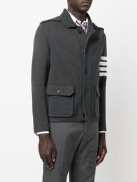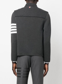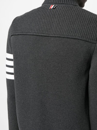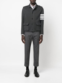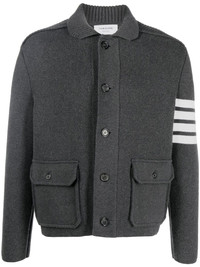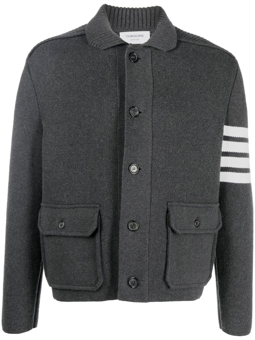 stripe-detail buttoned cardigan stripe-detail buttoned cardigan from THOM BROWNE featuring cotton-cashmere blend, knitted construction, side stripe detailing, two front flap pockets, front button fastening, long sleeves, straight hem and medium grey. Made in Italy Composition Cotton 81%, Cashmere 14%, Polyamide 5% SIZE & FIT Model measurements Height 6 ft 2 in(1.87 m) Bust/Chest 36.41 in(92.5 cm) Hips 37 in(94 cm) Waist 29.52 in(75 cm) FittingInformation Designed to be unstructured, offering a loose fit throughout Made with a midweight knit, this piece offers some stretch This piece fits true to size – take your usual size Washing instructions Dry Clean Only