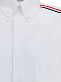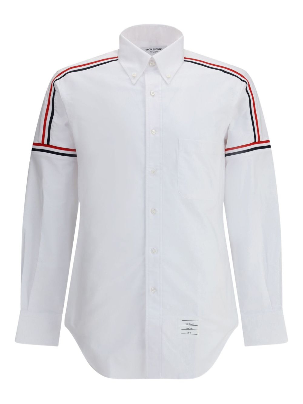 stripe-detail long-sleeve shirt Highlights - White - Long sleeves - Button fastening - Chest pocket - Three-stripe shoulder detail Made in Italy Composition Cotton 100% Washing instructions Read Manufacturer Guidelines