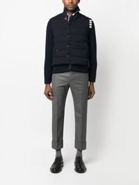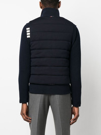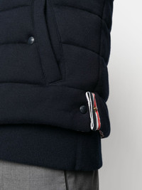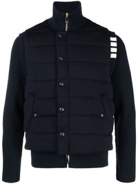 padded press-stud fastening jacket Highlights - Navy blue - Virgin wool - Padded design - Front press-stud fastening - Long sleeves - Two front welt pockets Made in Italy Composition Outer: Virgin Wool 100% Lining: Cupro 100% Filling: Polyester 100% SIZE & FIT Model measurements Height 6 ft 2 in(1.88 m) Bust/Chest 36.61 in(93 cm) Hips 35.82 in(91 cm) Waist 27.95 in(71 cm) FittingInformation This piece fits true to size. We recommend you get your regular size Cut for a relaxed fit Made with a mid-weight fabric Washing instructions Dry Clean Only