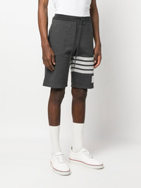 stripe-detail track shorts grey cotton stripe detailing logo patch to the front elasticated drawstring waistband two side inset pockets rear patch pocket Imported Composition Cotton 100% SIZE & FIT Model measurements Height 6 ft 0 in(1.84 m) Bust/Chest 36.22 in(92 cm) Hips 35.43 in(90 cm) Waist 26.77 in(68 cm) Measurement FRONT RISE 12.59 in(32 cm) LENGTH 20.47 in(52 cm) WAIST 26.37 in(67 cm) FittingInformation Designed for a straight-leg fit, offering an unrestricted and comfortable fit over the leg Adjust this piece’s waistband to your preference using the drawstring Made from a midweight non-stretch fabric, this piece offers minimal elasticity when worn This piece fits true to size – take your usual size