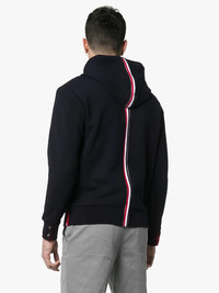 stripe-detail zip-up hoodie Highlights - Navy - Cotton - Navy blue - Cotton - Loopback knit - Two-way zip fastening - Drawstring hood - Long sleeves - Buttoned cuffs - Logo patch to the front - Two front pouch pockets - Rwb stripe - Signature grosgrain loop tab - Straight hem Made in Italy Composition Cotton 100% Washing instructions Dry Clean Only