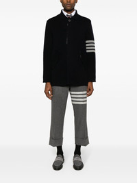 stripe-detailing wool blend cardi-coat Highlights - Navy blue/light grey - Virgin wool blend - Knitted construction - Stripe detailing - Signature grosgrain loop tab - Ribbed spread collar - Concealed front button fastening - Long sleeves - Two side flap pockets - Straight hem Made in Italy Composition Virgin Wool 98%, Polyamide 2% SIZE & FIT Model measurements Height 6 ft 2 in(1.88 m) Bust/Chest 36.61 in(93 cm) Hips 35.82 in(91 cm) Waist 27.95 in(71 cm) FittingInformation Designed for a slim fit, offering a comfortable fit that sits just away from the body Made from a midweight non-stretch fabric, this piece offers minimal elasticity when worn This piece fits true to size – take your usual size Washing instructions Dry Clean Only