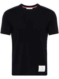 stripe-detailing wool T-shirt Highlights - Midnight blue/dark green - Stretch-wool - Jersey texture - Logo patch to the front - Stripe detailing to the side - Signature grosgrain loop tab - Crew neck - Short sleeves - Straight hem Made in Italy Composition Wool 97%, Elastane 3% SIZE & FIT Model measurements Height 6 ft 2 in(1.87 m) Bust/Chest 38.18 in(97 cm) Hips 36.61 in(93 cm) Waist 29.13 in(74 cm) FittingInformation Designed for a relaxed fit, this piece allows for comfort and movement when worn Made from a midweight fabric This piece fits true to size – take your usual size