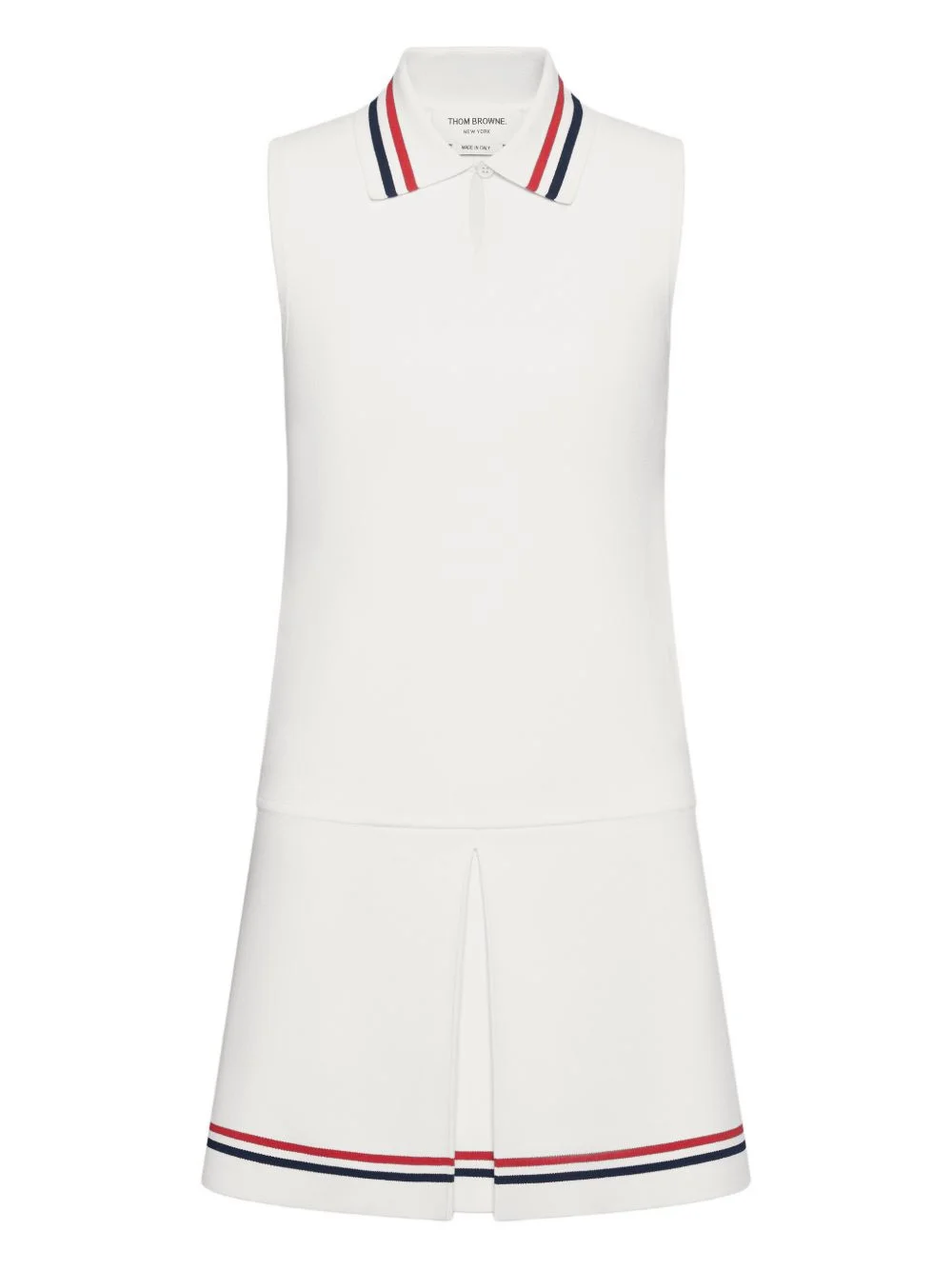 stripe pleated tennis mini dress Highlights - White - Striped trim - Polo collar - Sleeveless - Pleated skirt - Keyhole detail Made in Italy Composition Viscose 82%, Polyester 16%, Polyamide 1%, Spandex/Elastane 1% Washing instructions Read Manufacturer Guidelines