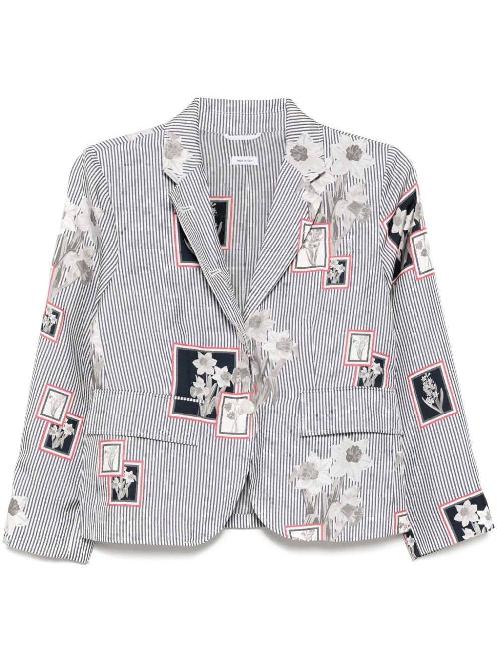 striped blazer Highlights - Navy blue - Front button fastening - Buttoned cuffs - Full lining Made in Italy Composition Lining: Silk 100% Outer: Silk 100%