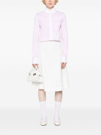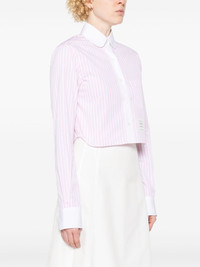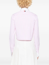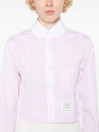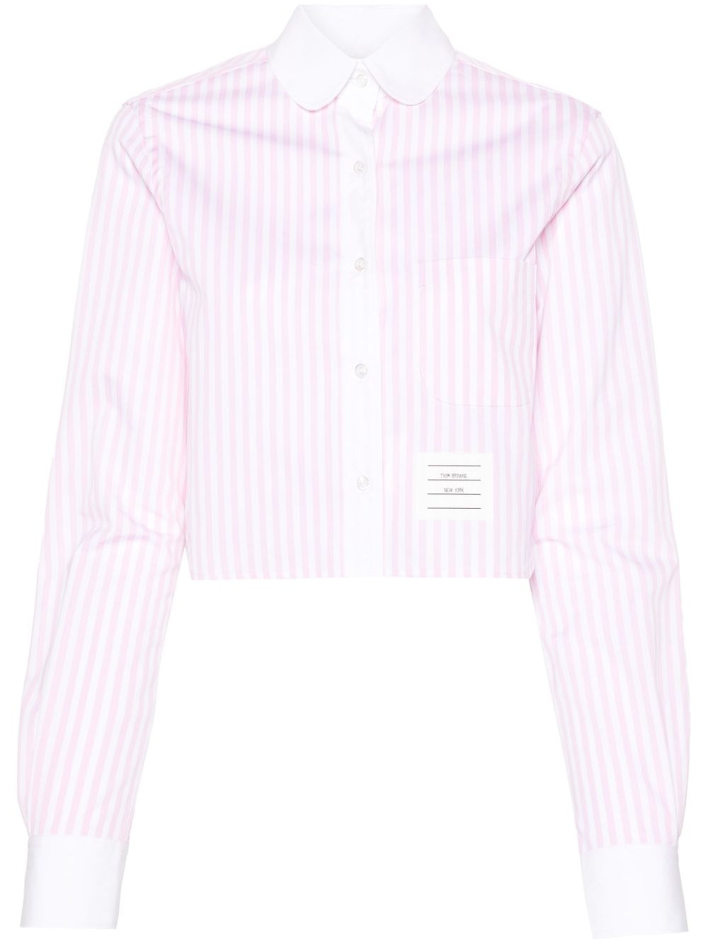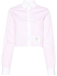 striped cotton cropped shirt Highlights - Light pink/white - Cotton - Poplin texture - University stripe - Logo patch to the side - Signature grosgrain loop tab - Rounded collar - Front button fastening - Long sleeves - Buttoned cuffs - Curved hem - Cropped Made in Italy Composition Cotton 100% SIZE & FIT Model measurements Height 5 ft 10 in(1.77 m) Bust/Chest 34.25 in(87 cm) Hips 37.4 in(95 cm) Waist 29.13 in(74 cm) FittingInformation Designed for a boxy fit, intended for a loose fit throughout Made from a midweight non-stretch fabric This piece fits true to size – take your usual size