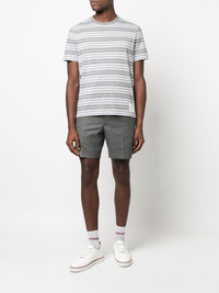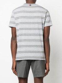 striped cotton T-shirt Thom Browne imagines this classic round-neck T-shirt in a grey colourway for SS23. The striped design adds a preppy touch to the cotton garment. Made in Italy Composition Cotton 100% SIZE & FIT Model measurements Height 6 ft 2 in(1.88 m) Bust/Chest 36.61 in(93 cm) Hips 35.82 in(91 cm) Waist 27.95 in(71 cm) Measurement CHEST 48.03 in(122 cm) LENGTH 29.92 in(76 cm) FittingInformation Designed to be unstructured, offering a loose fit throughout Made from a lightweight non-stretch fabric, this piece offers minimal elasticity when worn This piece fits true to size – take your usual size