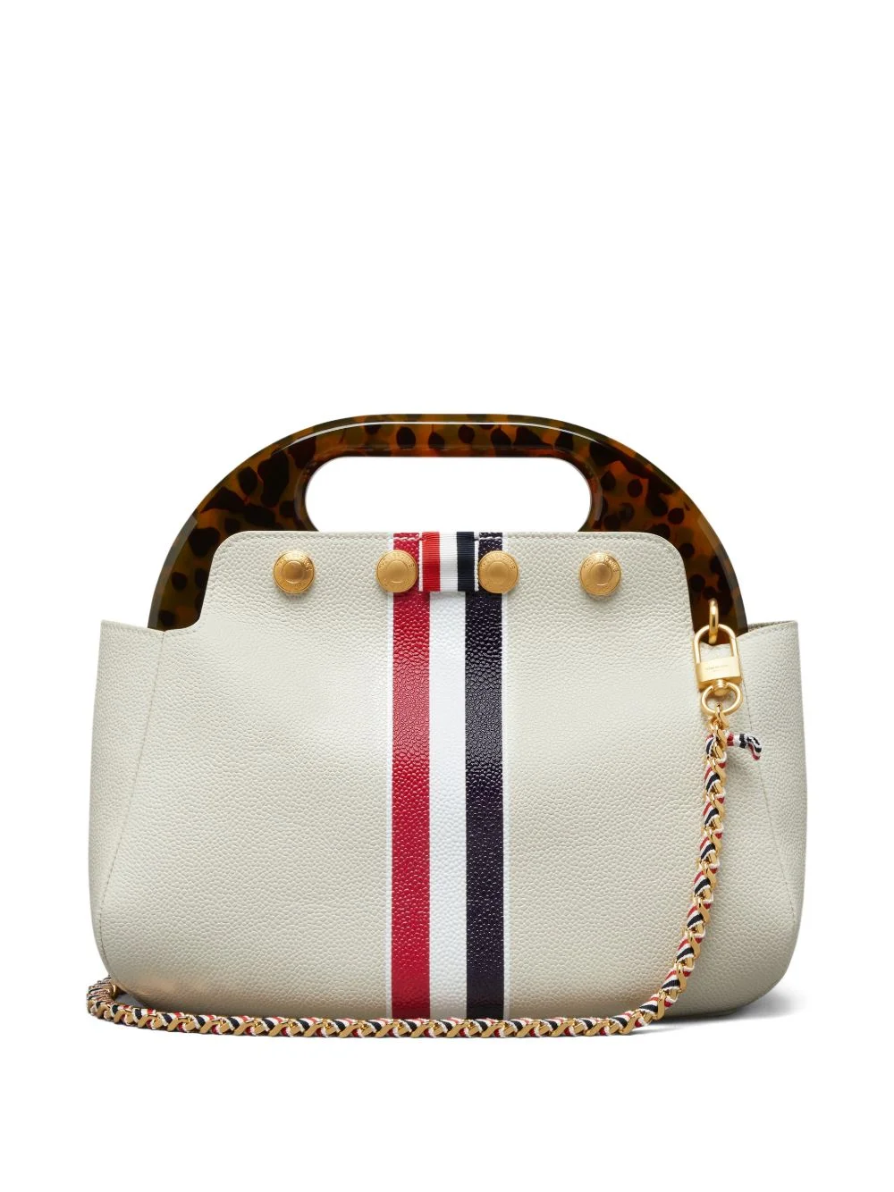 striped-detail leather shoulder bag Highlights - Ecru - Pebble grain - Striped detail - Single top handle - Chain strap - Gold-tone hardware Made in Italy Composition Lining: Polyester 100% Outer: Calf Leather 100%