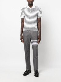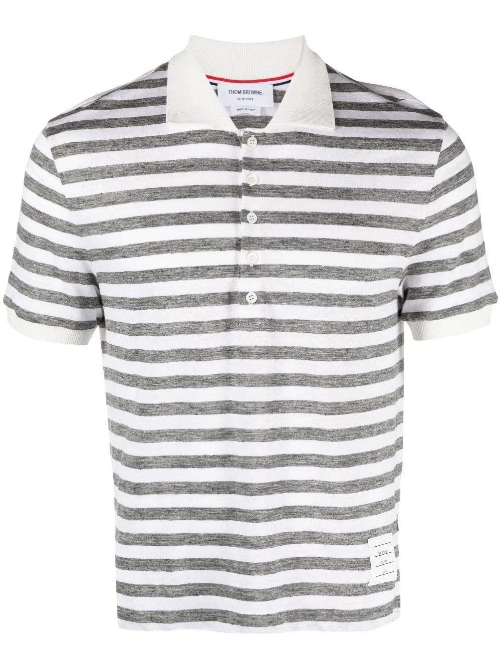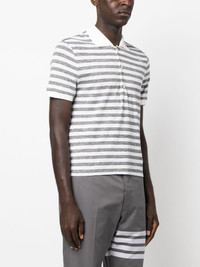striped linen polo shirt Highlights - Light grey/off-white - Linen/flax - Horizontal stripe print - Classic collar - Contrasting collar - Logo patch to the front - Short front button fastening - Short sleeves - Ribbed cuffs - Straight hem Made in Italy Composition Linen/Flax 96%, Elastane 4% SIZE & FIT Model measurements Height 6 ft 2 in(1.87 m) Bust/Chest 36.41 in(92.5 cm) Hips 37 in(94 cm) Waist 29.52 in(75 cm) FittingInformation Designed for a relaxed fit, this piece allows for comfort and movement when worn Made from a midweight non-stretch fabric, this piece offers minimal elasticity when worn This piece fits true to size – take your usual size