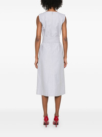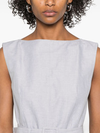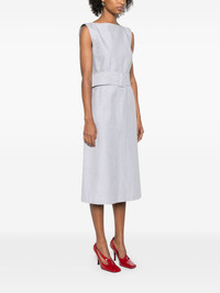 striped midi dress Highlights - Light grey - Concealed rear hook and zip fastening - Boat neck - Sleeveless - Detachable and adjustable waist belt Made in Italy Composition Lining: Silk 100% Outer: Linen/Flax 60%, Cotton 40% SIZE & FIT Model measurements Height 5 ft 11 in(1.8 m) Bust/Chest 31.49 in(80 cm) Hips 35.82 in(91 cm) Waist 24.8 in(63 cm) FittingInformation Designed for a slim fit that sits just away from the body offering a close yet comfortable fit The belt offers adjustability for fitted preferences Made from a midweight non-stretch fabric Measurement HIPS 36.22 in(92 cm) LENGTH 45.66 in(116 cm) WAIST 28.34 in(72 cm) BUST 33.07 in(84 cm) Shoulder Width 15.35 in(39 cm) Washing instructions Dry Clean Only