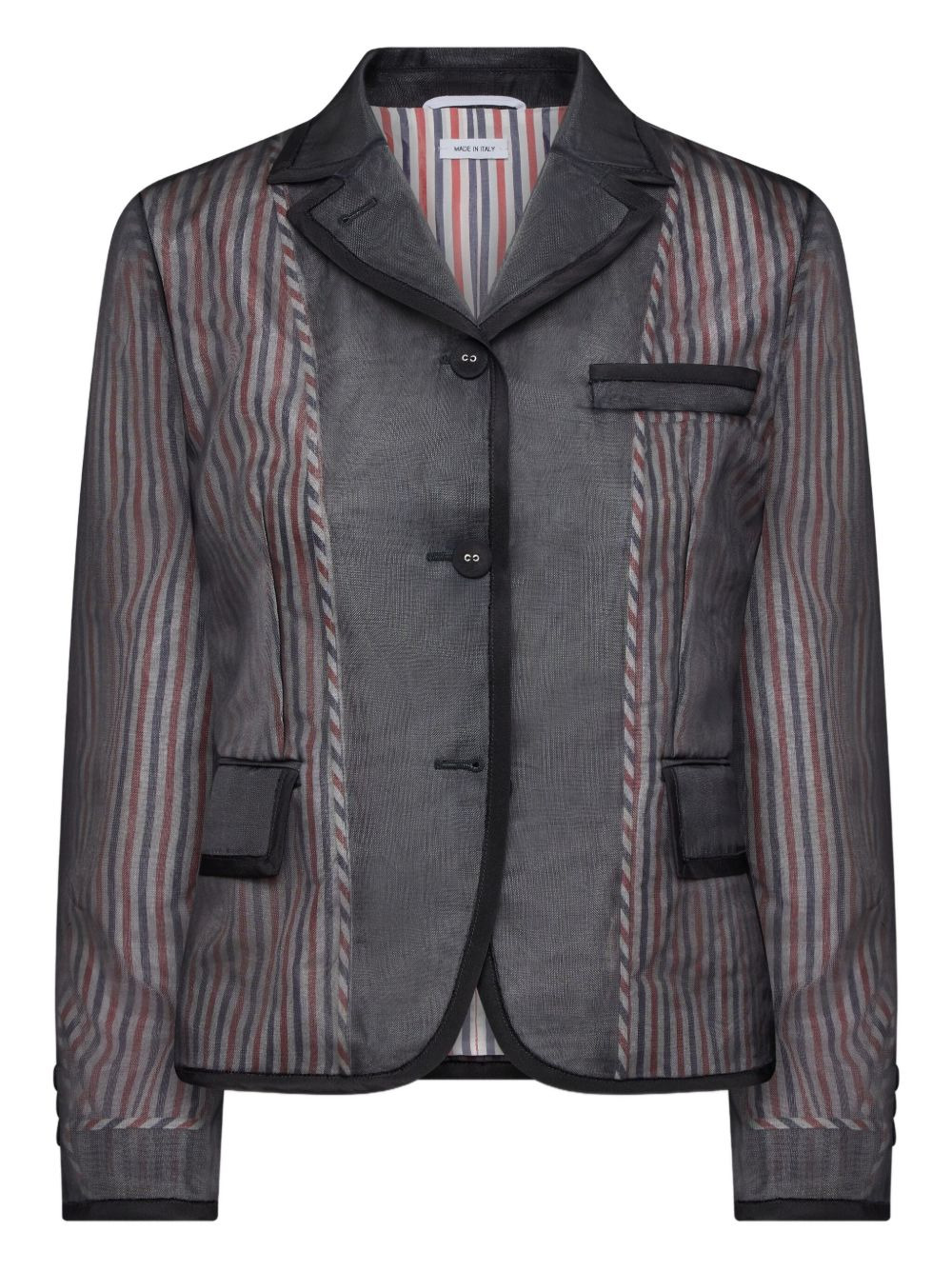 striped organza blazer Highlights - Black - Signature rwb stripe pattern - Organza - Faille tipping - Front button fastening - Exposed vent - Grosgrain ribbon detail Made in Italy Composition Outer: Silk 100% Lining: Polyamide 100%, Cupro 100% Washing instructions Read Manufacturer Guidelines
