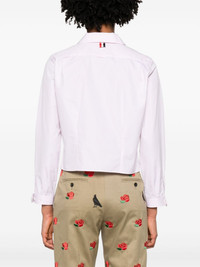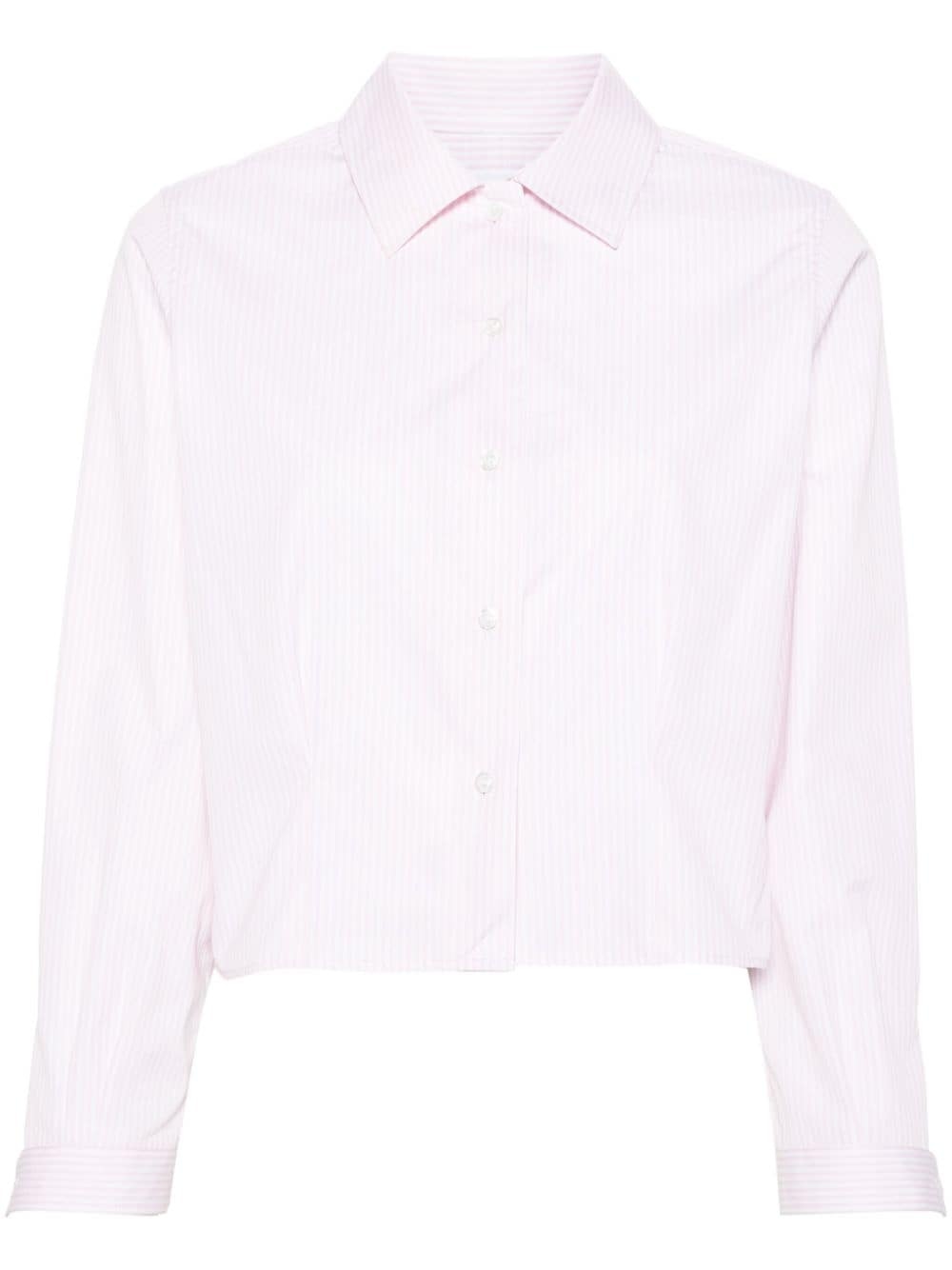striped poplin cropped shirt Highlights - Light pink/white - Cotton - Poplin texture - Vertical stripe pattern - Signature grosgrain loop tab - Box-pleat detail - Classic collar - Front button fastening - Long sleeves with buttoned cuffs - Straight hem - Cropped Made in Italy Composition Cotton 100% SIZE & FIT Model measurements Height 5 ft 10 in(1.77 m) Bust/Chest 33.07 in(84 cm) Hips 37 in(94 cm) Waist 24.8 in(63 cm) FittingInformation Designed for a relaxed fit, this piece allows for comfort and movement when worn Cropped in length Made from a midweight non-stretch fabric This piece fits true to size – take your usual size
