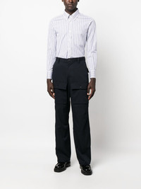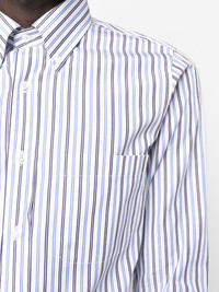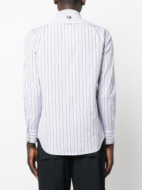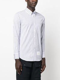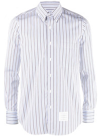 striped poplin shirt Tailored from cotton poplin, this shirt speaks to Thom Browne's penchant for uniform-inspired pieces. It is patterned with navy blue stripes, adding to its preppy feel. Highlights - Blue/white - Cotton - Poplin texture - Vertical stripe print - Logo patch to the front - Classic collar - Chest patch pocket - Front button fastening - Long sleeves - Buttoned cuffs Made in Italy Composition Outer: Cotton 100% SIZE & FIT Model measurements Height 6 ft 2 in(1.87 m) Bust/Chest 36.41 in(92.5 cm) Hips 37 in(94 cm) Waist 29.52 in(75 cm) FittingInformation Designed for a regular fit, allowing for a comfortably loose fit throughout the body Made from a midweight non-stretch fabric This piece fits true to size – take your usual size