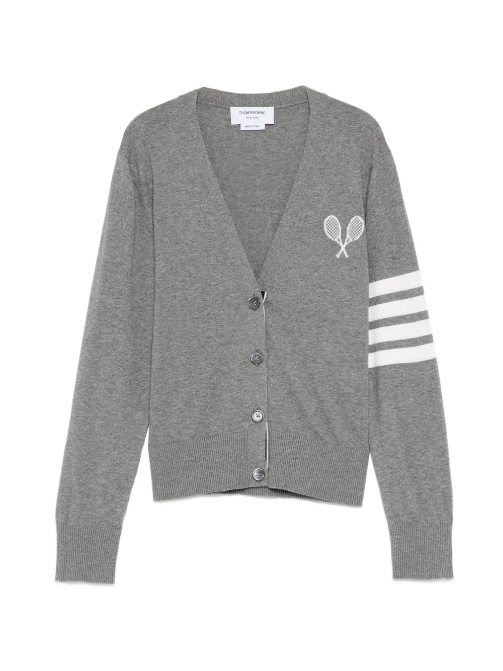 tennis logo cardigan Highlights - Light grey - Front button fastening - Long sleeves - Striped sleeves Made in Italy Composition Cotton 100% Washing instructions Dry Clean Only