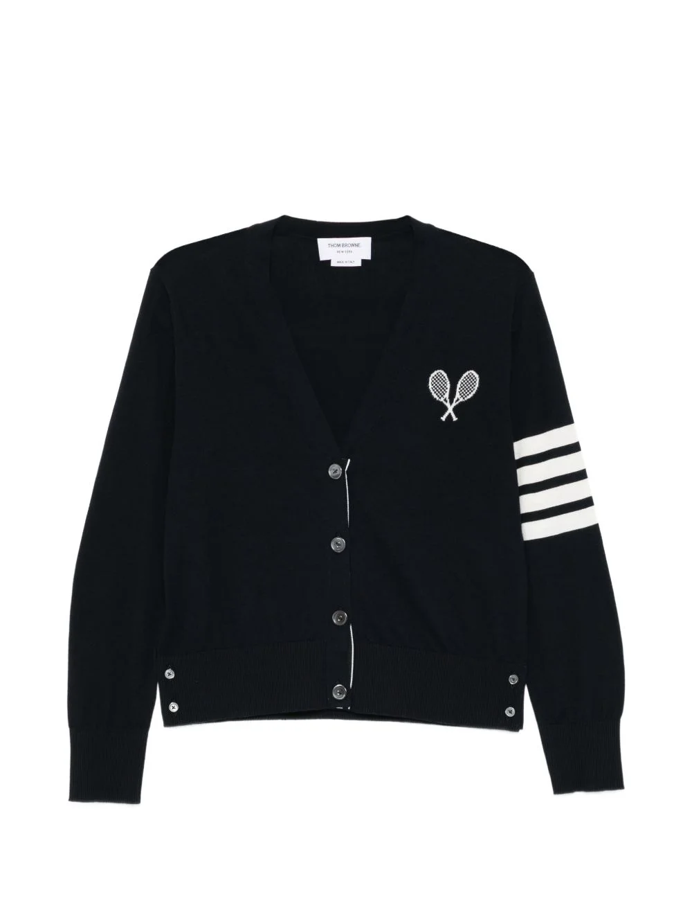 Tennis Racquets V-neck Cardigan Highlights - Navy - Front button fastening - Long sleeves - Ribbed trim Made in Italy Composition Cotton 100% Washing instructions Do Not Wash/Do Not Dry Clean