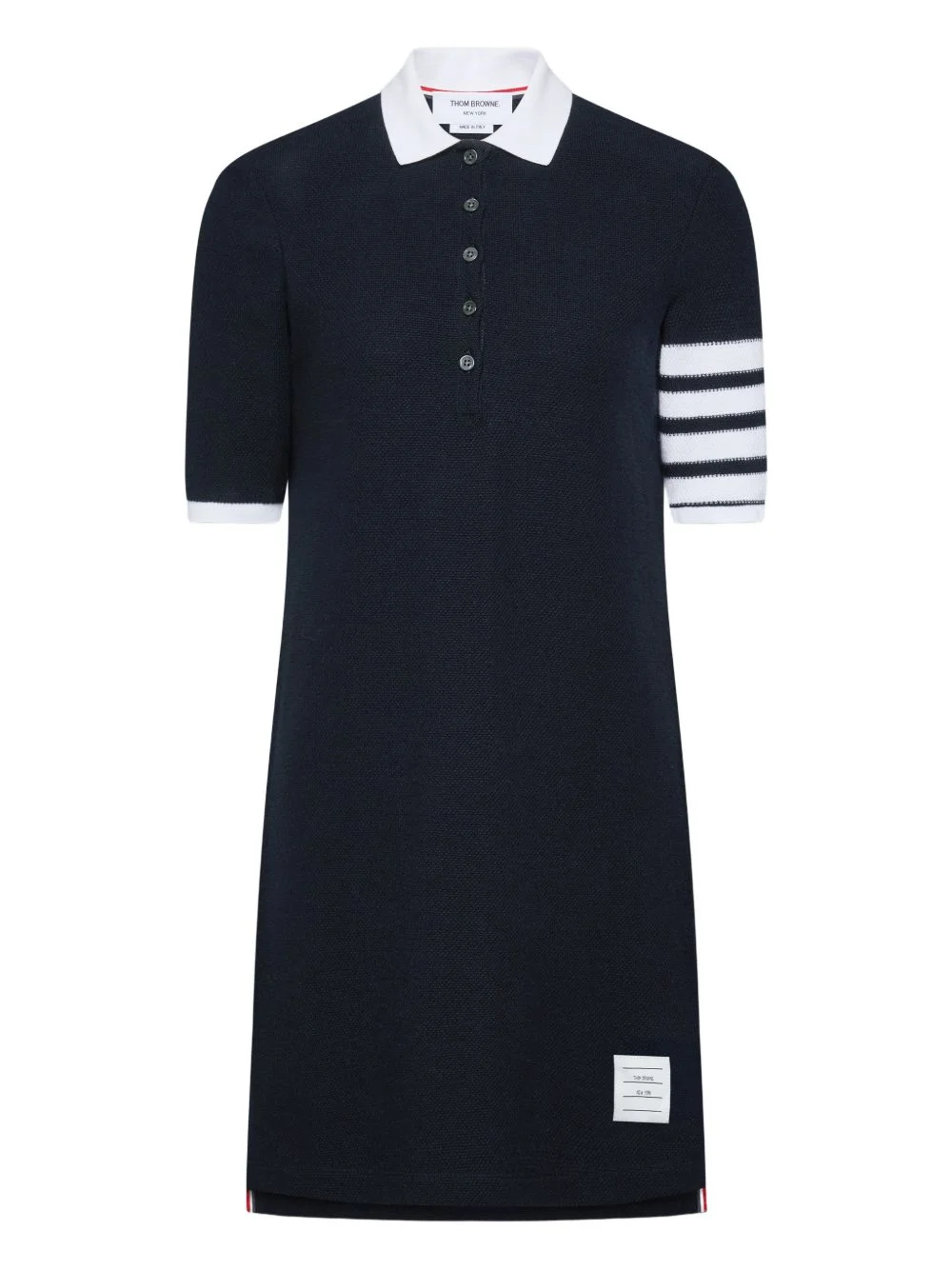 textured pique 4-bar mini polo dress Highlights - Navy blue - 4-bar stripe at the sleeve - Polo collar - Button fastening - Label applique Made in Italy Composition Cotton 90%, Lycra 10% Washing instructions Read Manufacturer Guidelines