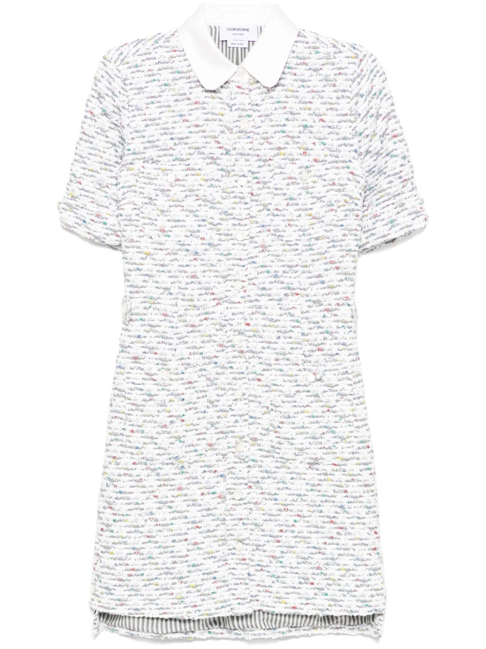 thigh length patch pocket dress Highlights - Medium grey - Button fastening - Button fastening pockets - Short sleeves - Classic collar Made in Italy Composition Outer: Polyamide 71%, Wool 16%, Polyester 8%, Viscose 5% Lining: Silk 100%