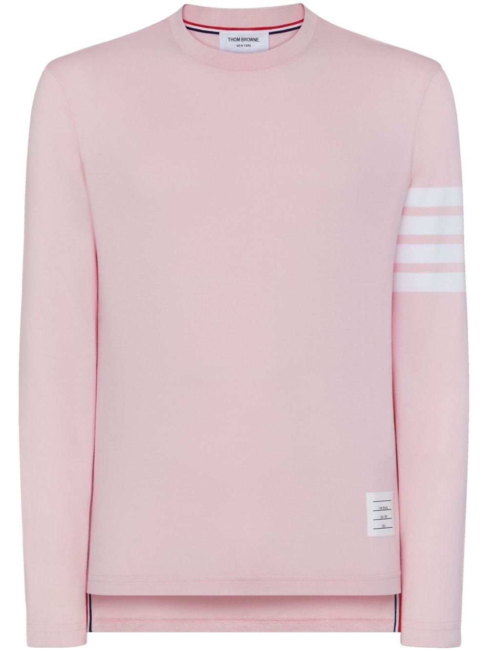 three-stripe long-sleeved T-shirt Highlights - Light pink/white - Cotton - Stripe detailing - Logo tag - Crew neck - Long sleeves - High-low hem Made in Italy Composition Cotton 100% Washing instructions Read Manufacturer Guidelines