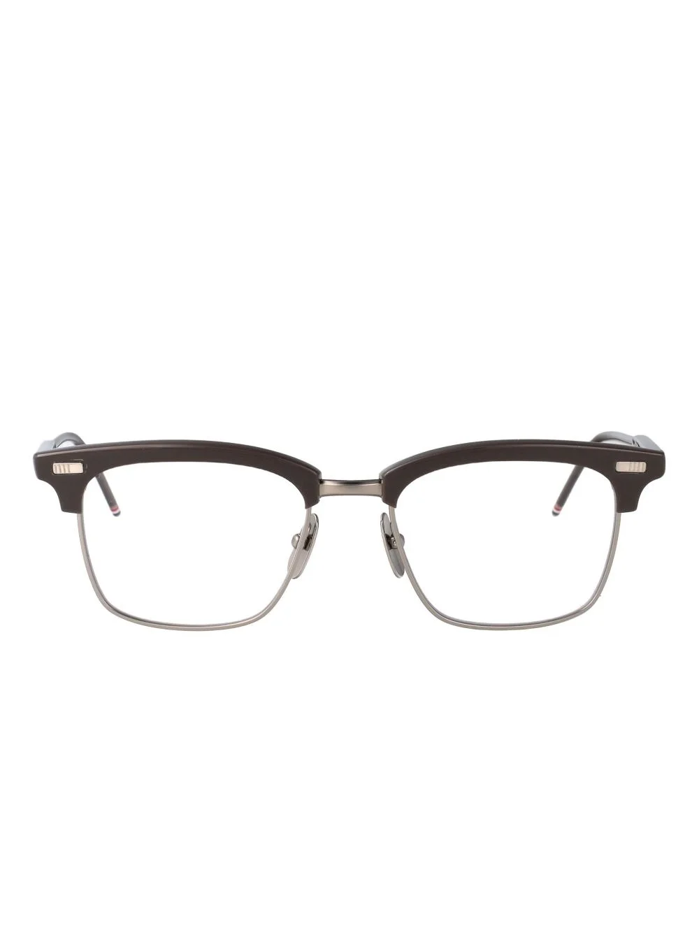 titanium rectangle glasses Highlights - Dark brown - Rectangle frame - Titanium arms - Subtle detailing - Clear lenses - These glasses come with a protective case. - All glasses from farfetch are sold as non-prescription frames. Imported Composition Acetate 100%, Titanium 100%