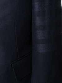 4-Bar single-breasted blazer Highlights - Casual fridays are a thing of the past. this navy wool-cashmere blend 4-bar single-breasted blazer from thom browne will make you want to suit up every day of the week. show them you mean business. featuring a front button fastening, a stripe detail to the side, notched lapels, front flap pockets, a broad welt chest pocket, button cuffs, a double vent to the rear, a signature tri-colour striped trim, a pull tab at the rear and a signature striped lining. Made in Italy Composition Cotton 100%, Wool 95%, Cashmere 5% SIZE & FIT FittingInformation Designed for a regular fit, allowing for a comfortably loose fit throughout the body The internal drawstring at the hem allows for fitted preferences Made from a midweight non-stretch fabric This piece fits true to size – take your usual size Measurement CHEST 35.98 in(91.4 cm) SLEEVE LENGTH 24.01 in(61 cm) LENGTH 26.49 in(67.3 cm) WAIST 35 in(88.9 cm) Washing instructions Dry Clean Only