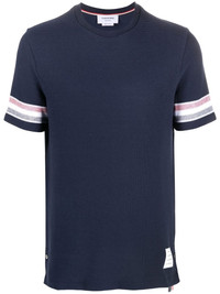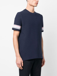 tri-colour striped knit T-shirt black cotton knitted construction logo patch to the front signature tricolour detail signature grosgrain loop tab crew neck short sleeves striped edge straight hem side stripe detailing Made in Italy Composition Cotton 100% SIZE & FIT Model measurements Height 6 ft 1 in(1.85 m) Bust/Chest 35.82 in(91 cm) Hips 37.79 in(96 cm) Waist 29.13 in(74 cm) Measurement CHEST 46.45 in(118 cm) SLEEVE LENGTH 19.68 in(50 cm) FittingInformation This piece fits true to size. We recommend you get your regular size Cut for a relaxed fit Made with a mid-weight fabric Washing instructions Hand Wash